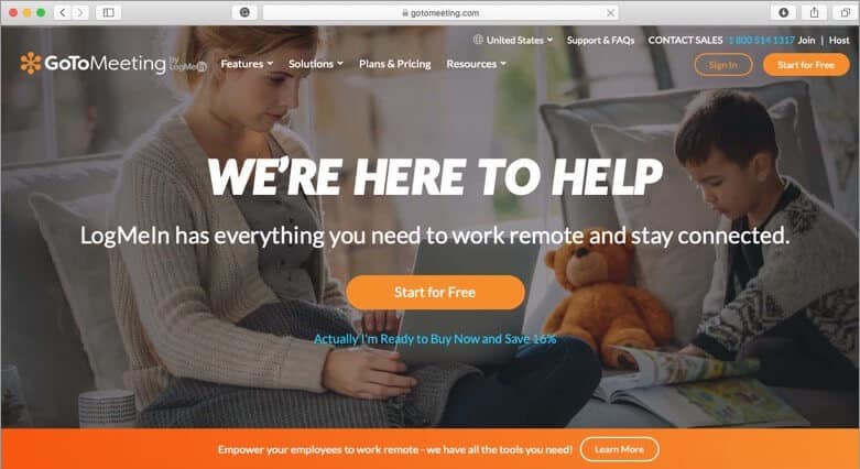 GoToMeeting by LogMeIn tilbyder mange løsninger, der hjælper dig med fjernarbejde, lige fra videomøder med et enkelt klik, webinarsupport, skyoptagelse, tegneværktøjer og skærmdeling.