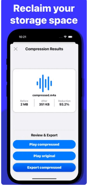 På samme måde kan du på iPhone bruge en app som f.eksAudio kompressorfor at formindske store lydfiler. Appen fortæller dig, hvor meget du vil være i stand til at reducere filstørrelsen. Det lader dig også afspille både den originale fil og den komprimerede fil, så du kan skelne mellem både versionerne, dvs. den originale og de komprimerede versioner.