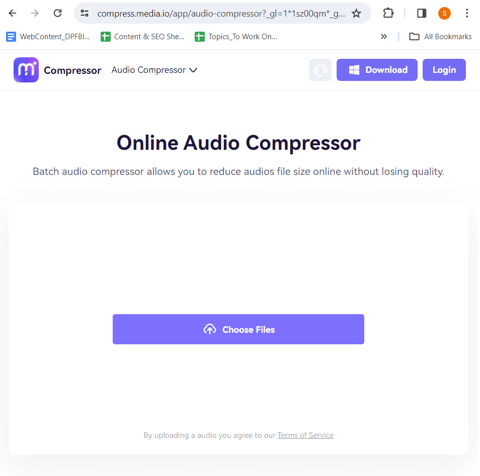 3. Komprimer store lydfiler online (fungerer på alle enheder – Android/ iOS/ Mac/ Windows)