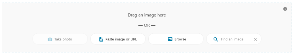 - Hvor der står "Træk et billede hertil", kan du trække din billedfil ind i søgefeltet, tage et billede ved hjælp af din enhed, indsætte en billed-URL eller gennemse din pc efter det pågældende billede.