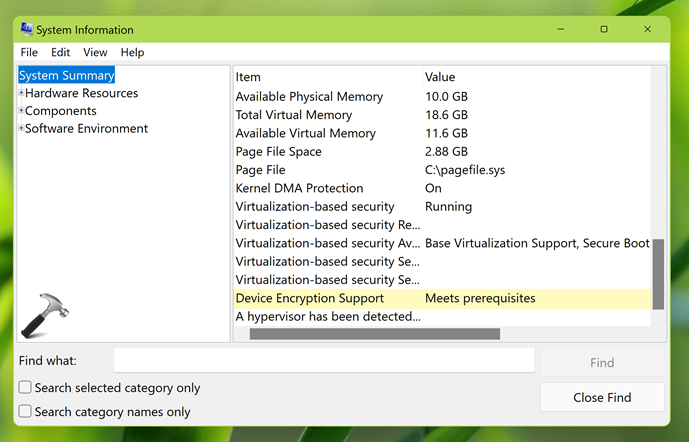 I dag har de fleste af enhederne understøttet enhedskryptering. For at kontrollere, om det understøttes på din enhed, skal du gå tilStartmenu > Alle apps > Windows-værktøjer. Højreklik påSystemoplysningerog vælg Kør som administrator. Når vinduet Systemoplysninger åbnes, skal du rulle ned i Systemoversigt og findeUnderstøttelse af enhedskryptering. Hvis det er Værdi erOpfylder forudsætninger, så kan du aktivere Enhedskryptering på dit system. Ellers kan du ikke aktivere det, da funktionen helt vil mangle.