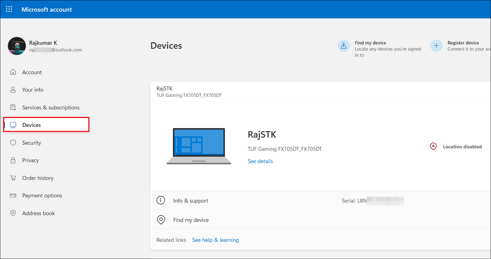Løsning 2: Fjern enhederne fra Microsoft-kontoen