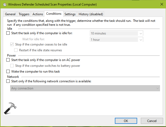 5.Klik på fanen Betingelser og fjern markeringen af alle muligheder.