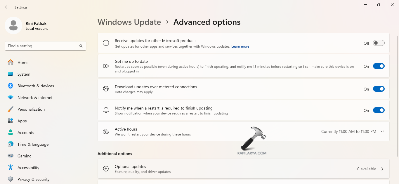 Trin 1-Først skal du gå til Indstillinger > Windows Update > Avancerede indstillinger > Valgfri opdateringer for at søge efter BIOS-opdateringer.