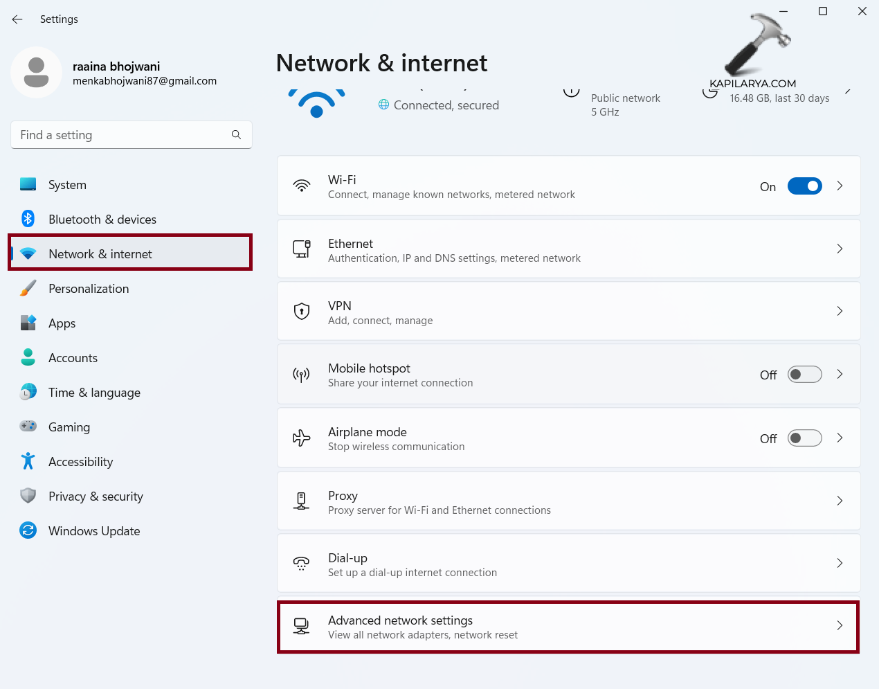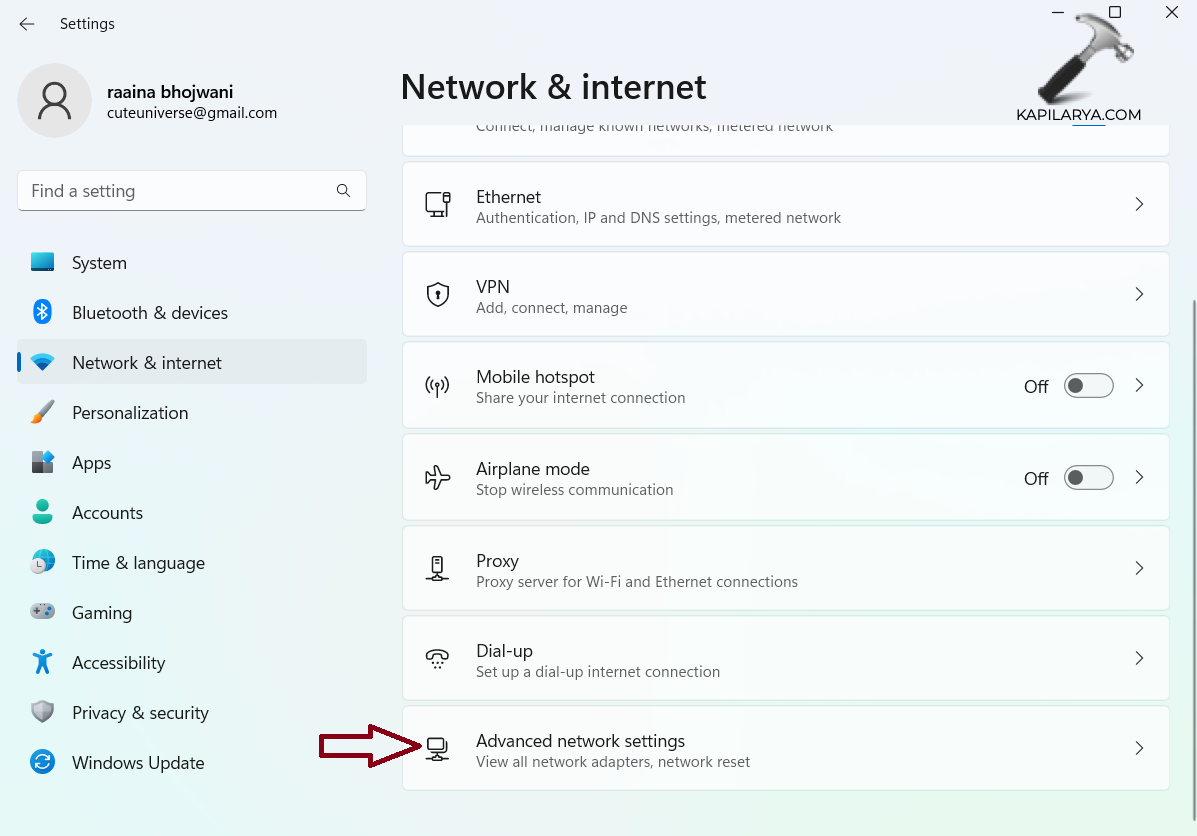 3. Klik derefter på "Avancerede netværksindstillinger".