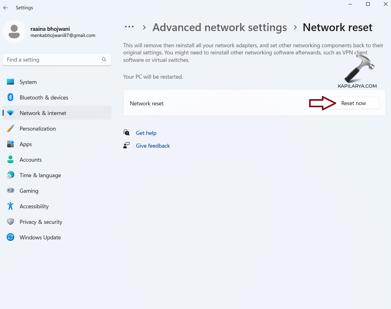 Rettelse 8: Nulstil netværk for at løse problemet Kan ikke oprette forbindelse til denne netværksfejl på Windows 11
