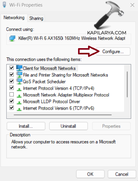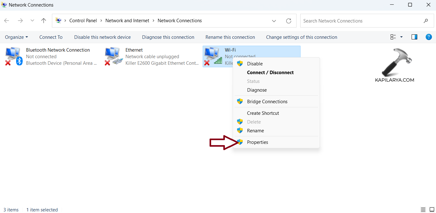 6. Højreklik på Wi-Fi og vælg "Egenskaber".