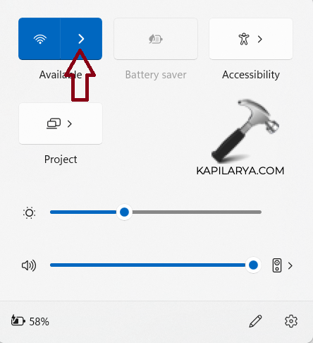 2. Klik på pilen ved siden af WiFi-ikonet.