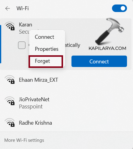 3. Højreklik på netværksnavnet og vælg "Glem".