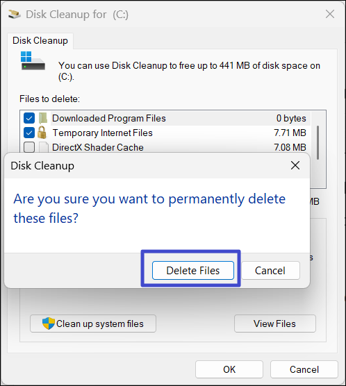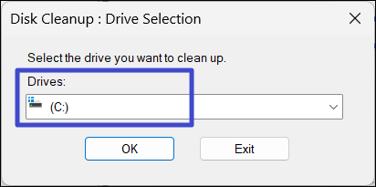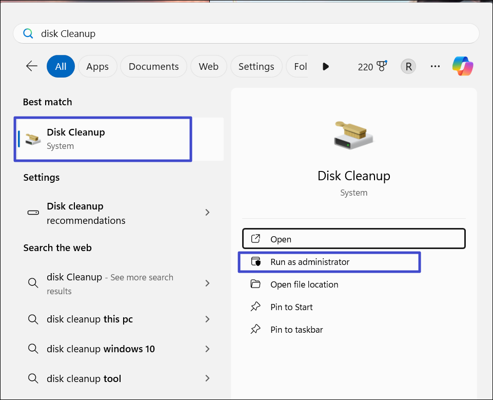 1. Skriv "Diskoprydning” i Windows-søgningen og vælg det øverste resultat.