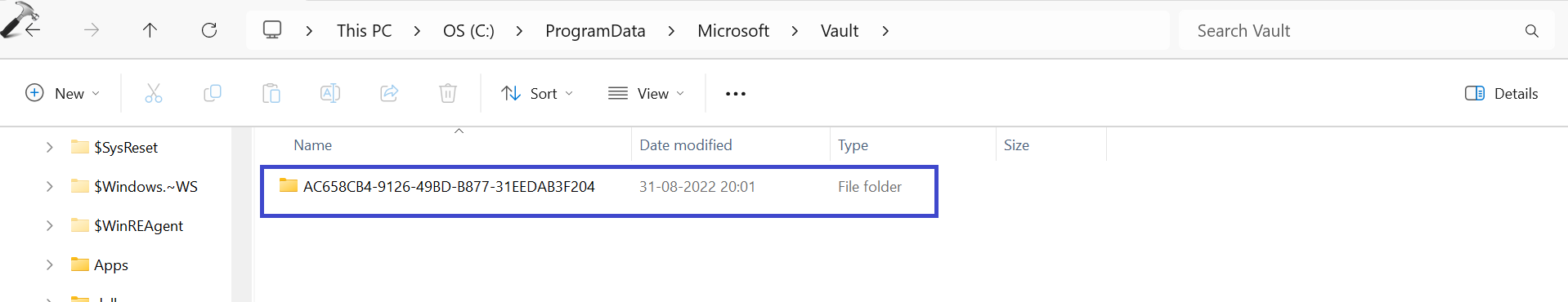 Nogle gange fungerer Credential Manage ikke, fordi Vault-biblioteket mangler visse tilladelser. For at gøre det, følg nedenstående trin: