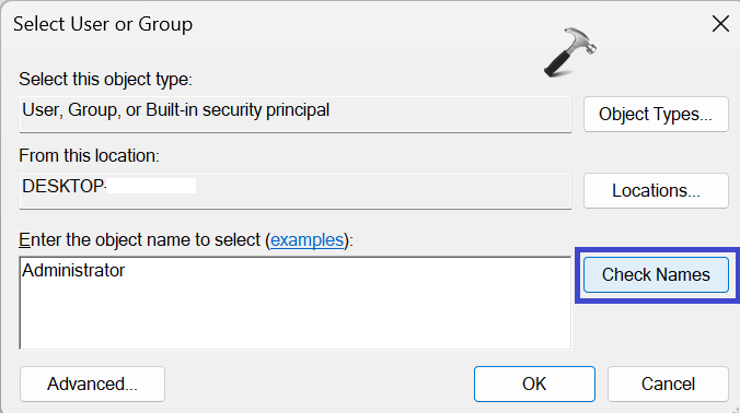 4. Indtast administratorer under "Indtast objektnavnet for at vælge” afsnit.