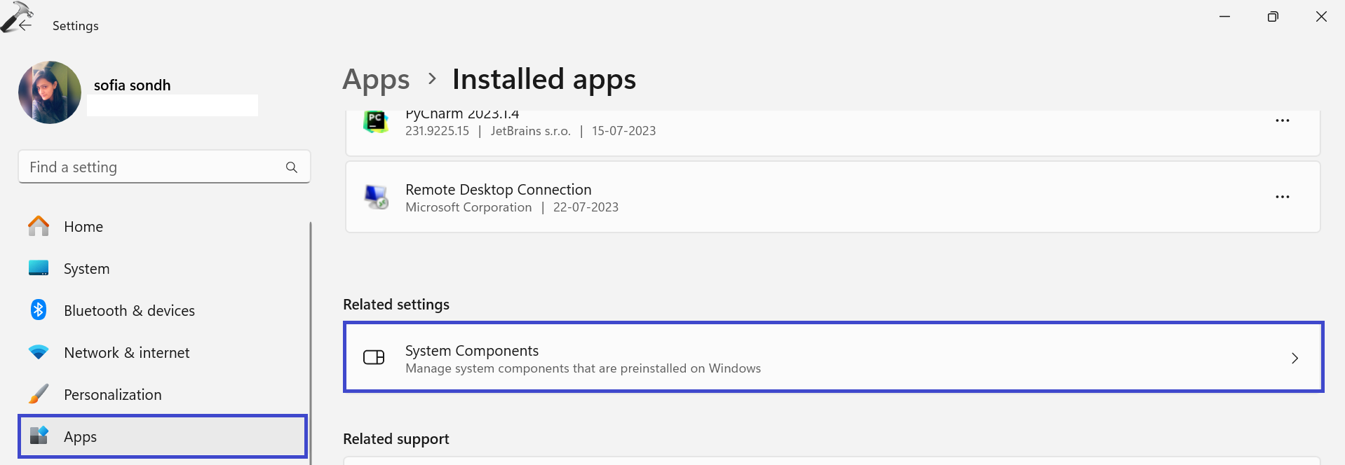 2. Klik derefter på "Systemkomponenter" mulighed.