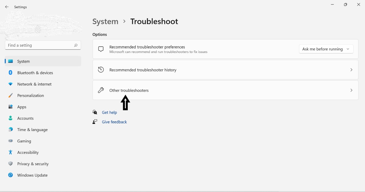 2. Klik påSystempå venstre panel, efterfulgt af at vælgeFejlfindingfra højre.