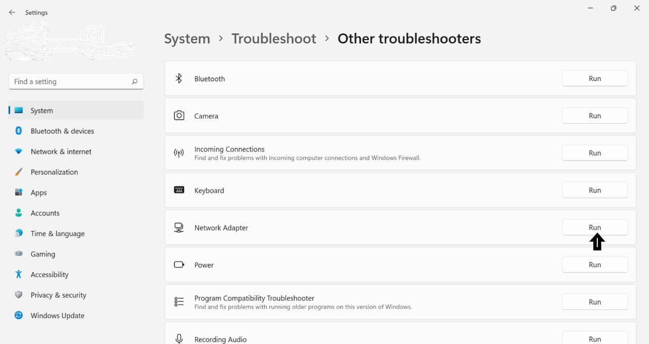 4. Tryk nu påLøbeknap svarende tilNetværksadapter.