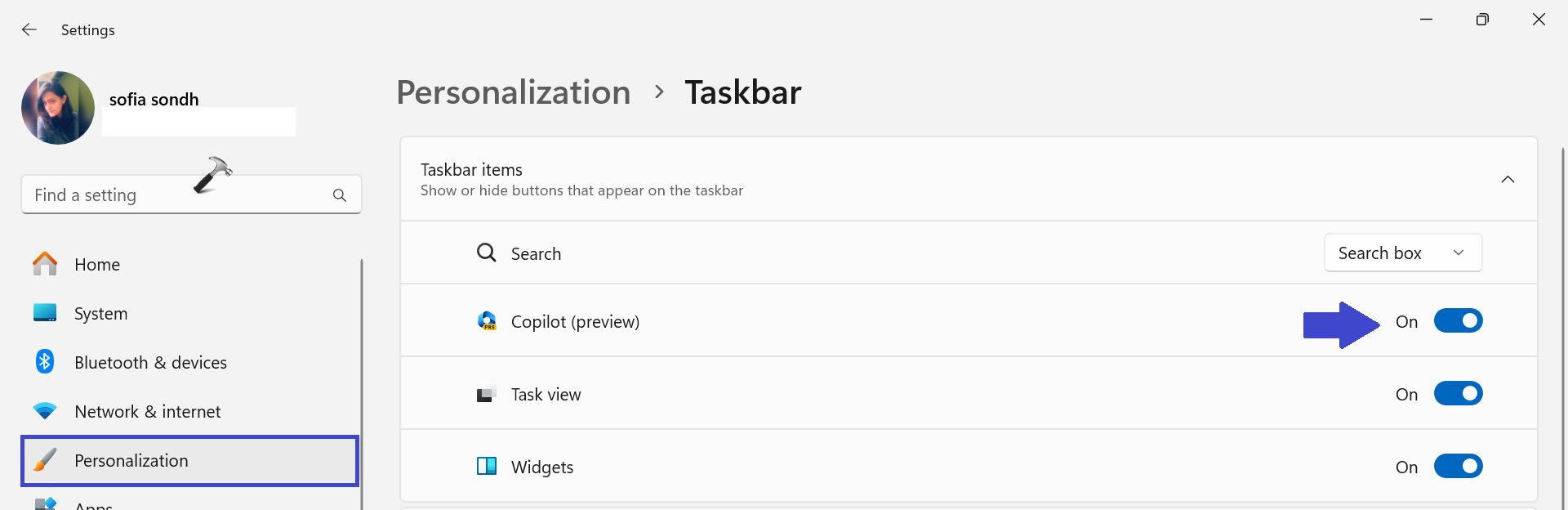 For at deaktivere Copilot-indstillingen skal du gå til Indstillinger, Tilpasning, Proceslinje og slå Copilot-kontakten fra. Dette vil trække Copilot ud af din proceslinje og dermed deaktivere den, selvom programmet vil forblive installeret på din computer i en vis kapacitet.