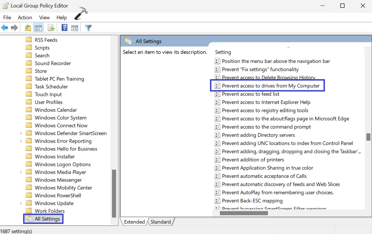 3. Dobbeltklik på "Forhindre adgang til drev fra Denne computer“.