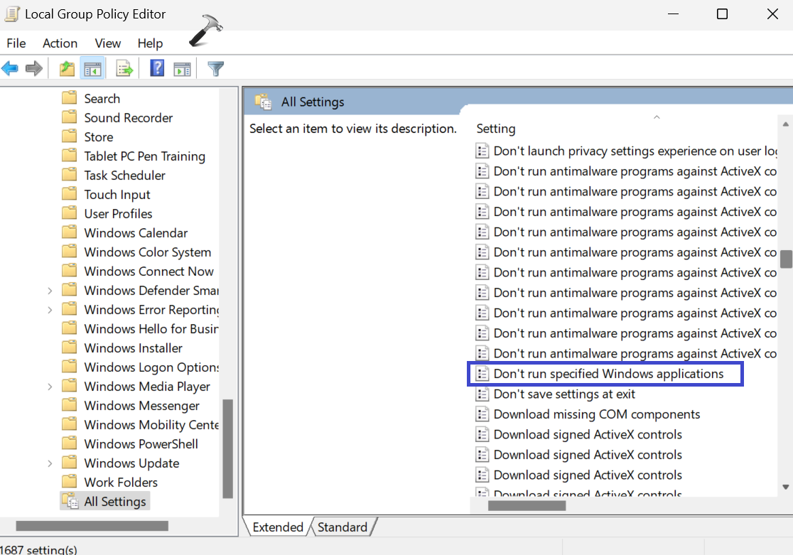 5. Dobbeltklik nu på "Kør ikke specificerede Windows-applikationer" mulighed.