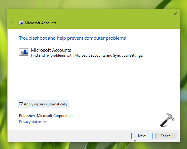 Fix 2: Kør Microsoft Accounts fejlfinding