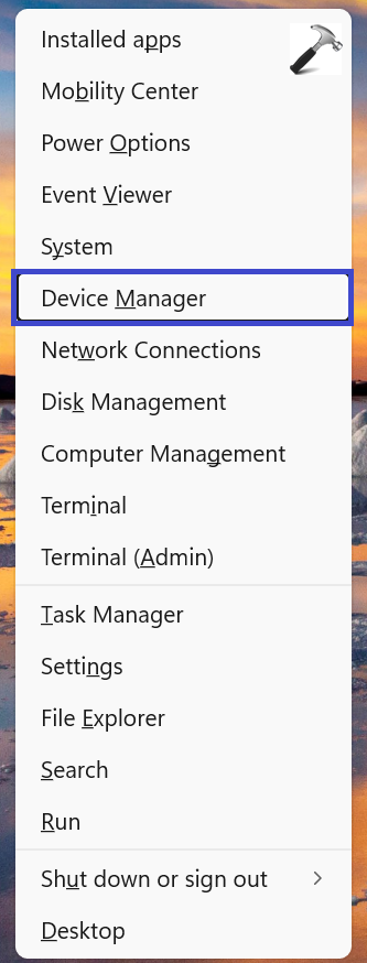 1: Tryk på Windows-tasten + X og vælg "Enhedshåndtering“.