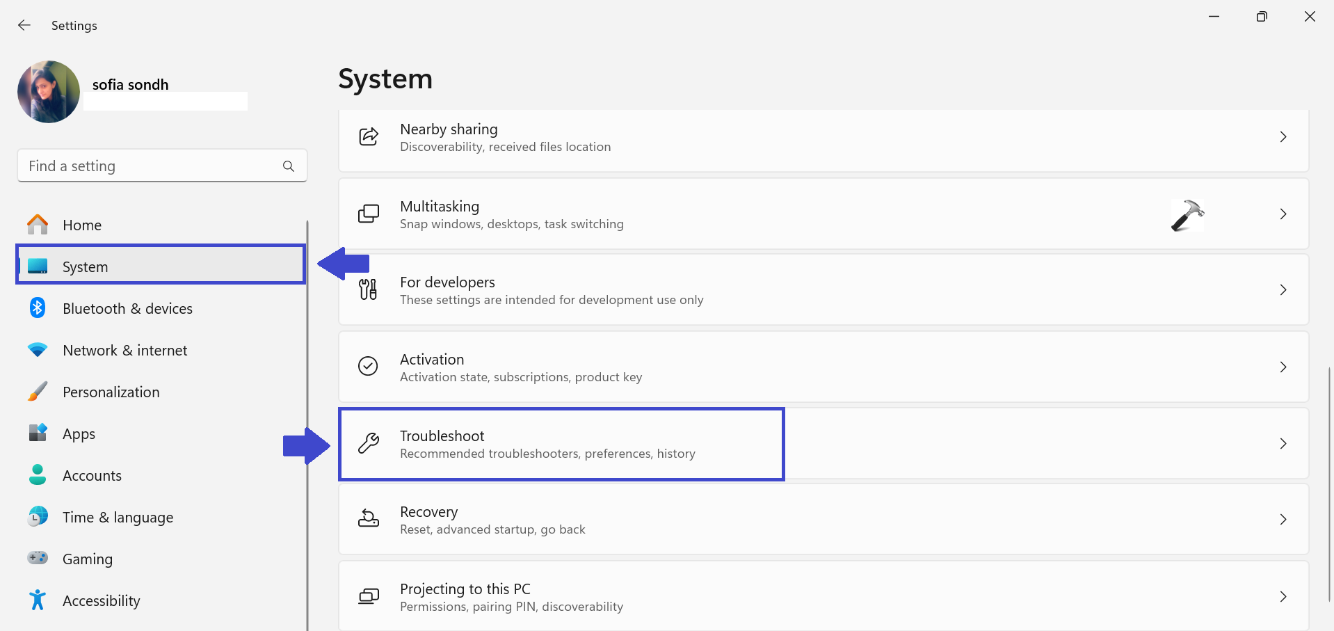 1: Åbn appen Indstillinger og klik på "Fejlfinding“.