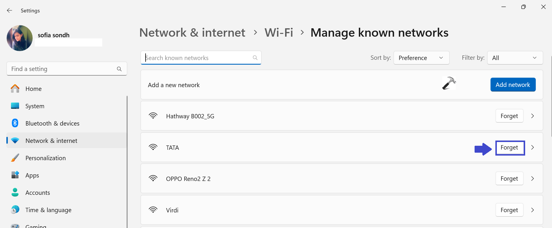Hvis du har problemer med, at Windows 11 ikke kan finde et Wi-Fi-netværk, som det plejede at oprette forbindelse til, kan du prøve at få det til at glemme det netværk og derefter oprette forbindelse til det igen. Dette kan også hjælpe, hvis netværket har et andet navn før.