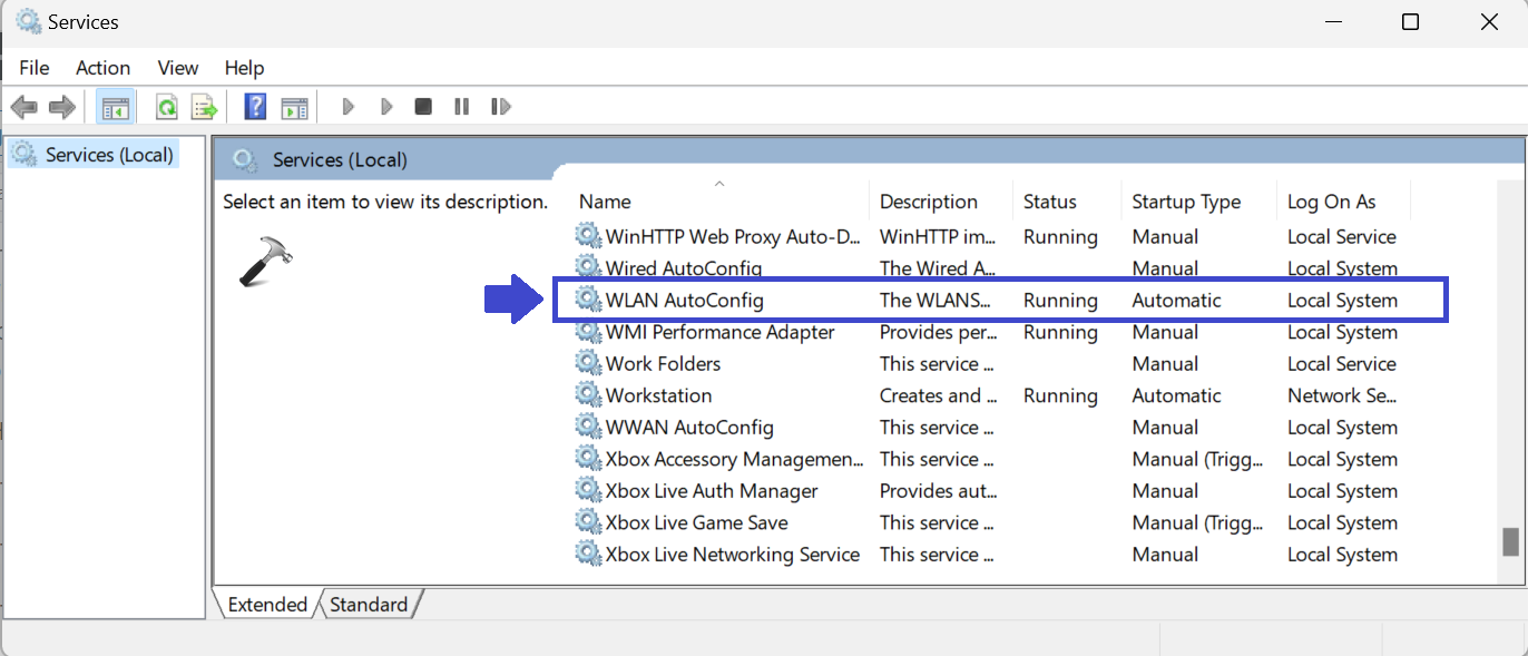 2: Se nu efter "WLAN AutoConfig” og dobbeltklik på den.
