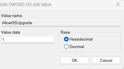 6. Højreklik på AllowOSUpgrade og vælg "Modify".
