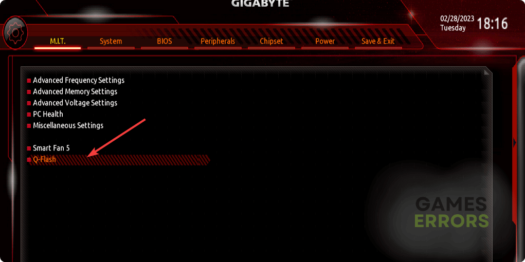 - Find opdateringsværktøj, f.eks.Q-Flash, og gå derhen.
