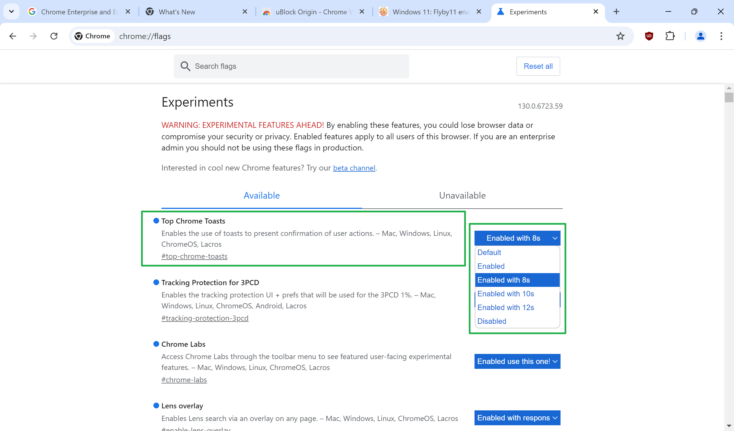 Note: Google kan til enhver tid fjerne eksperimentelle funktioner uden forudgående varsel. Muligheden for at deaktivere Toast-meddelelserne kan blive fjernet i en fremtidig version af browseren.