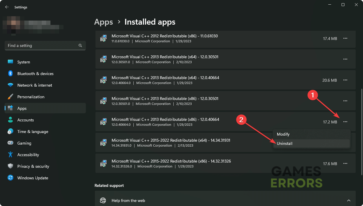 - Problematiske Visual C++ redistributable filer:Visual C++ er en nødvendig komponent til Hogwart Legacy. Hvis det bliver ødelagt, vil spillet vise den fejl, vi diskuterer.