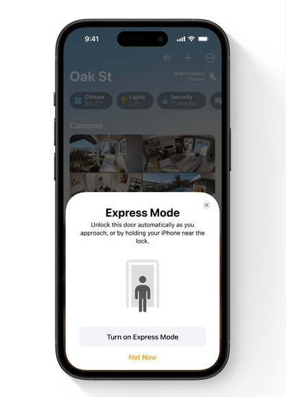 Express Mode repræsenterer endnu et væsentligt fremskridt i iOS 18s muligheder. Denne funktion muliggør problemfri oplåsning af døre, når brugerne nærmer sig, hvilket eliminerer behovet for manuelt at interagere med låsen. Ved at udnytte Ultra Wideband-teknologien kan kompatible enheder registrere brugerens nærhed og låse op automatisk, hvilket øger bekvemmeligheden og strømliner adgangen til hjemmet.