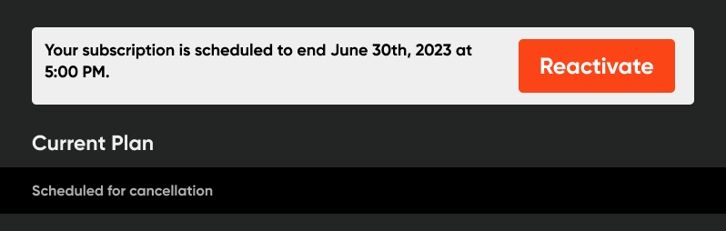 Du kan se opsigelsesplanen (dato og klokkeslæt) på siden "Abonnement og fakturering", når du opsiger dit abonnement. VælgeGenaktiverfor at fortryde opsigelsen og beholde dit abonnement.