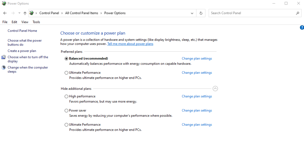Trin 5:Klik på linket Skift planindstillinger under den valgte strømplan.
