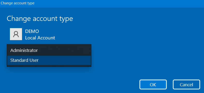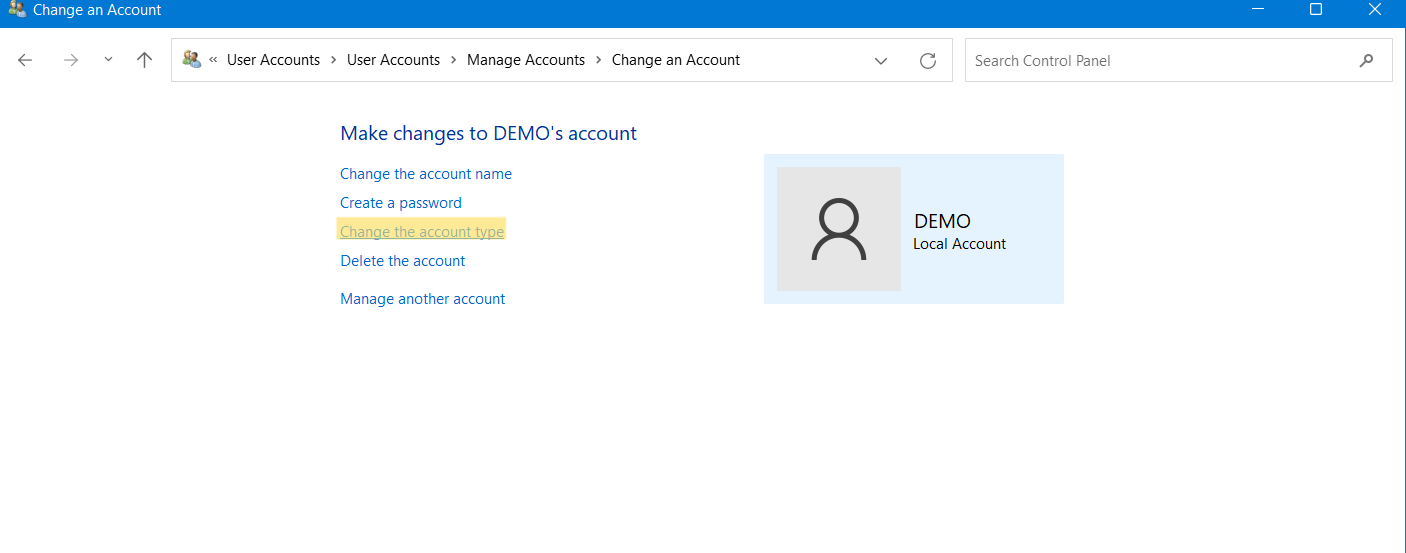 6.Vælg brugerkontotype, og klik derefter påSkift kontotype.