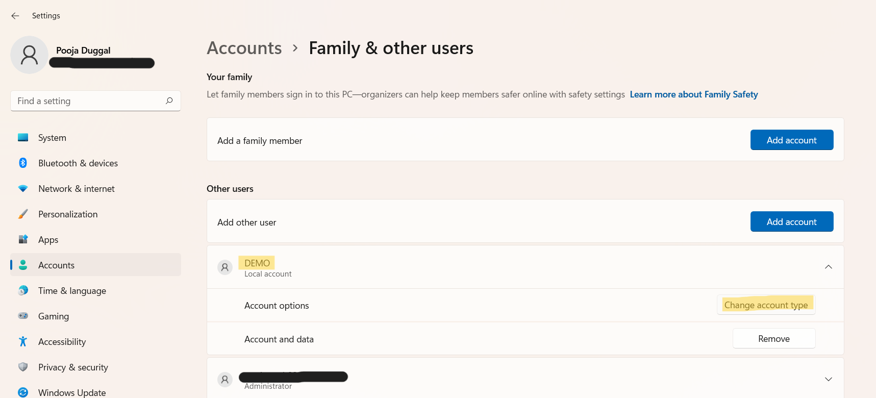 Så det er, hvordan man ændrer brugerkontotype i Windows 11 gennem forskellige metoder.