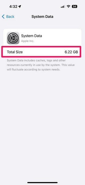 Systemdata eller anden lagringskategori på din iPhone er en dedikeret mappe til caches og midlertidige filer, som iOS skal bruge for at køre din enhed. Så hvis du i vid udstrækning bruger din iPhone til at spille onlinespil, streame indhold eller surfe på nettet, vil systemdataene fortsætte med at stige.