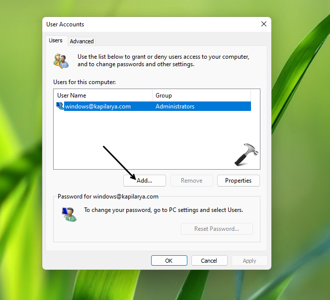 2.Klik på under Brugerkonti på fanen BrugereTilføje.
