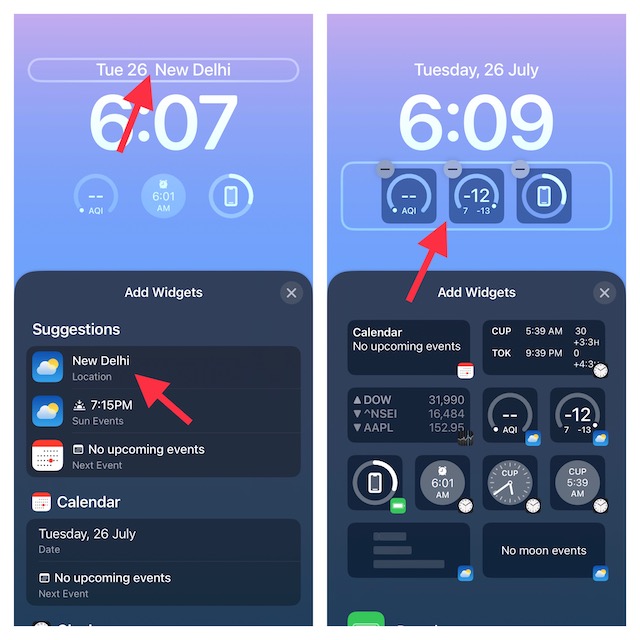 Bemærk, at du også kan vise en smart widget over tiden mellem dato og datolæsning. Bare tryk pådato- og datoaflæsningenfor at afsløre widgetvælgeren, og tryk derefter på den widget, du gerne vil tilføje.