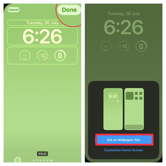 8.Når du har tilpasset låseskærmen, skal du trykke påFærdigøverst til højre på skærmen.