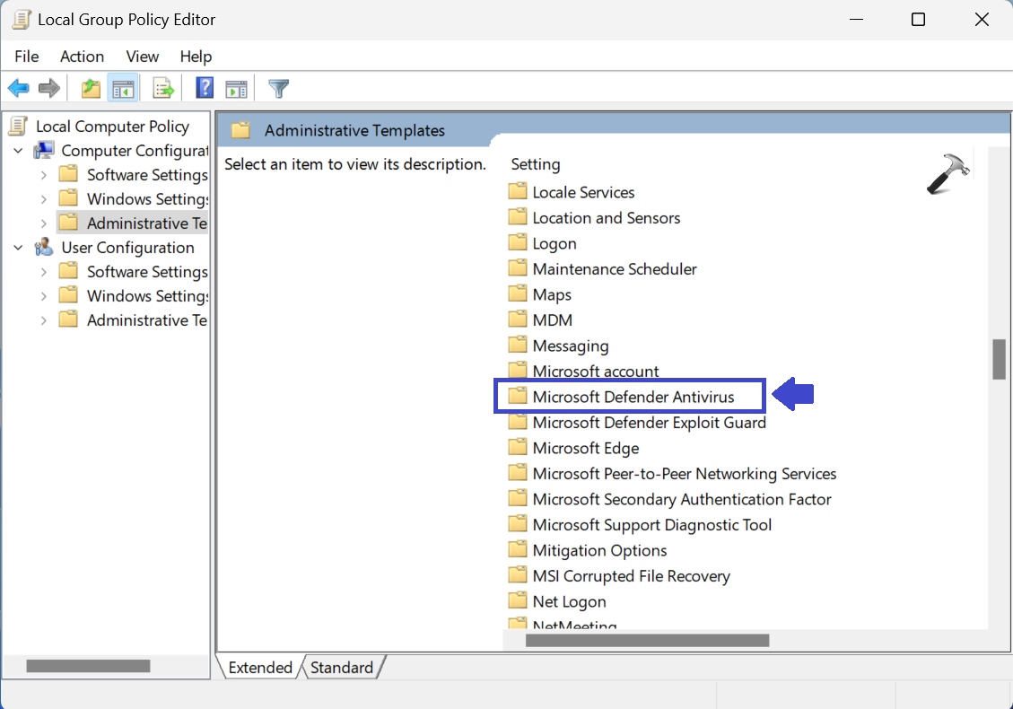 Computer ConfigurationAdministrative TemplatesMicrosoft Defender Antivirus