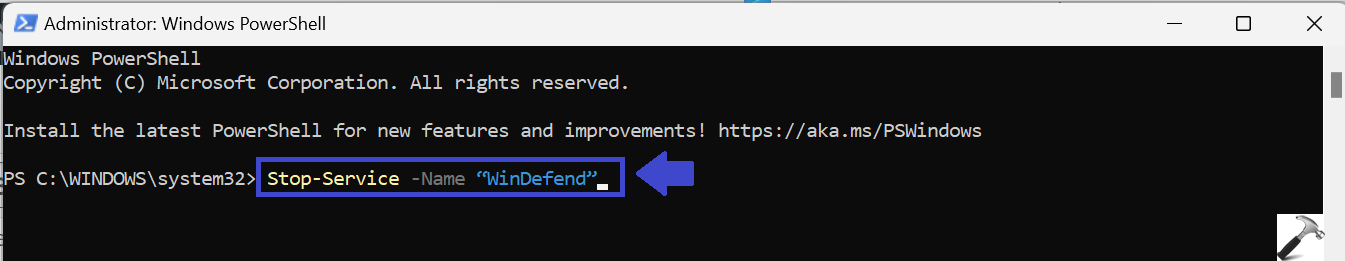 Hvis panelet Tjenester ikke tillader dig at deaktivere Antimalware Service Executable, kan du deaktivere det ved hjælp af Windows PowerShell. Følg nedenstående trin for at gøre det: