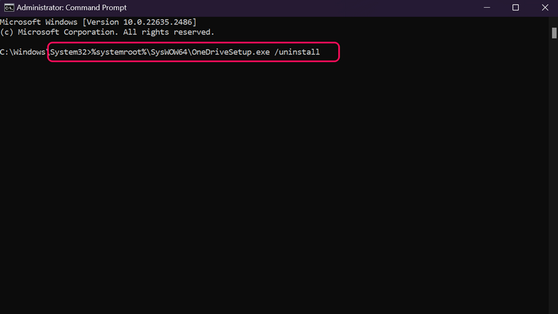 Hvis du ikke vil bruge appen Indstillinger til at afinstallere OneDrive fra din Windows 11-pc eller bærbare computer, kan du bruge kommandopromptværktøjet i stedet. Følg trinene lige nedenfor for at bruge kommandoprompt til at fjerne OneDrive fra din enhed: