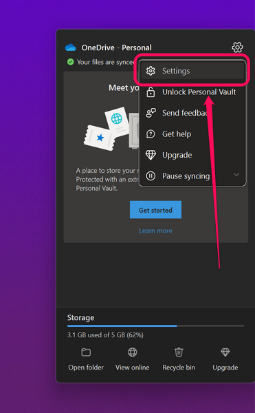 Trin 2: Fjern linket til din pc fra OneDrive i Windows 11