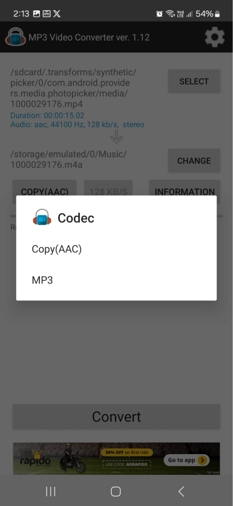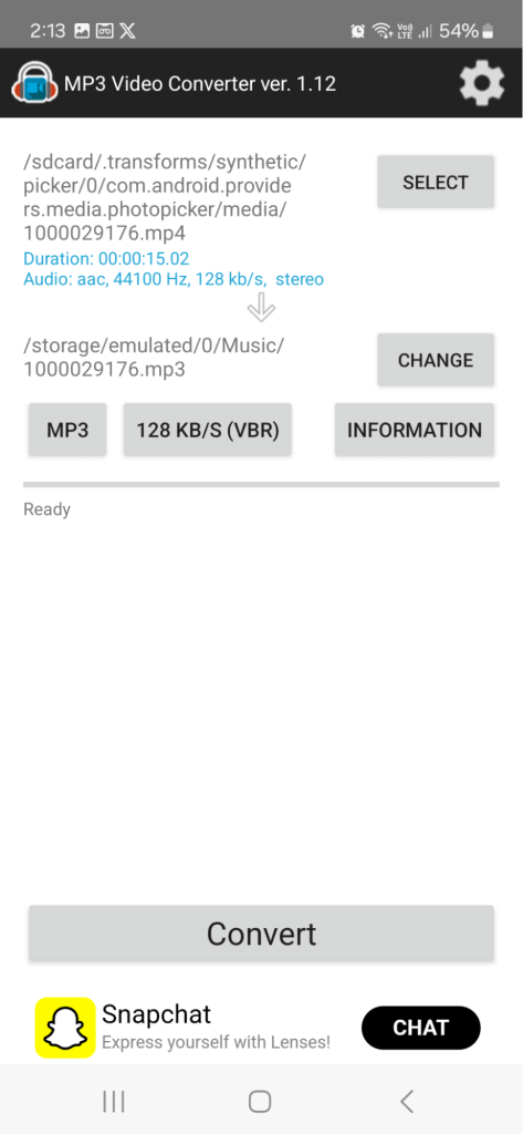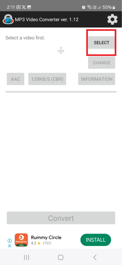 Trin 5:Åbn MP3 Video Converter-appen, tryk påVælgeikonet, og vælg det downloadede Instagram-hjul.