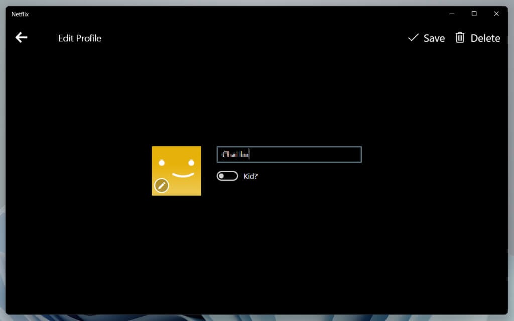 Selvom der er en Netflix-app til Windows, lader den dig kun redigere Netflix-profilikonet og -navnet. Det tillader dig ikke at slette profiler.