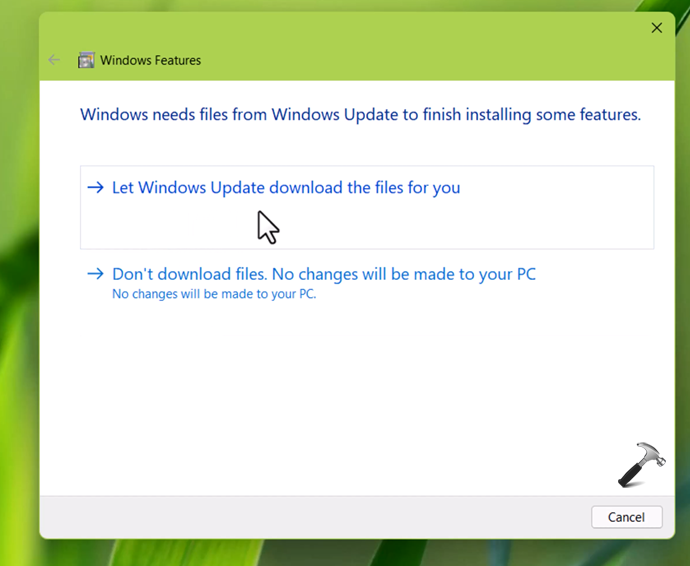 3.I næste vindue skal du vælge indstillingenLad Windows Update downloade filerne for dig.