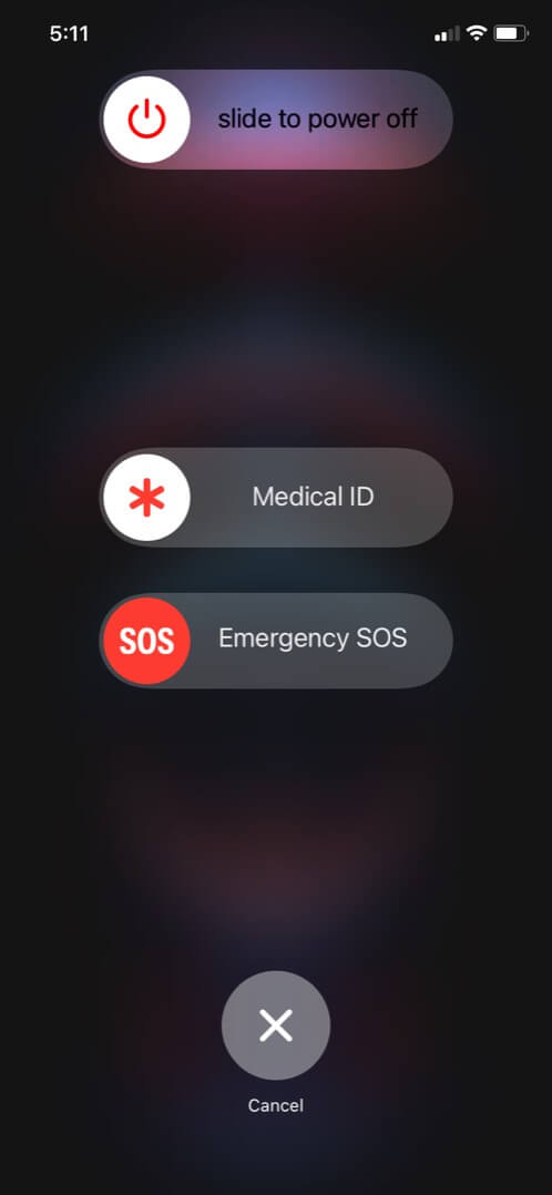 Selvom det kan virke klicheagtigt, har genstart af iPhone løst problemet "Intet SIM" eller "Ugyldigt SIM" for nogle brugere og kan også være nyttigt for dig. Dette er en simpel fejlfindingsmetode og bør komme først, når du forsøger at løse dette problem.