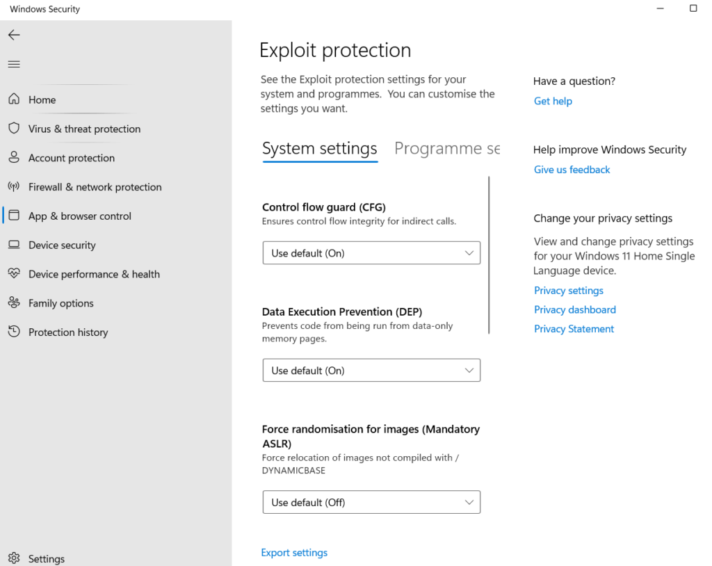 En anden vigtig indstilling, som du skal aktivere for at Windows-undersystemet til Android fungerer korrekt, er Control Flow Guard. Følg disse trin for at aktivere det –