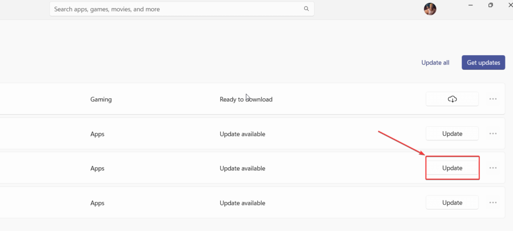 - Klik påOpdateringved siden af.